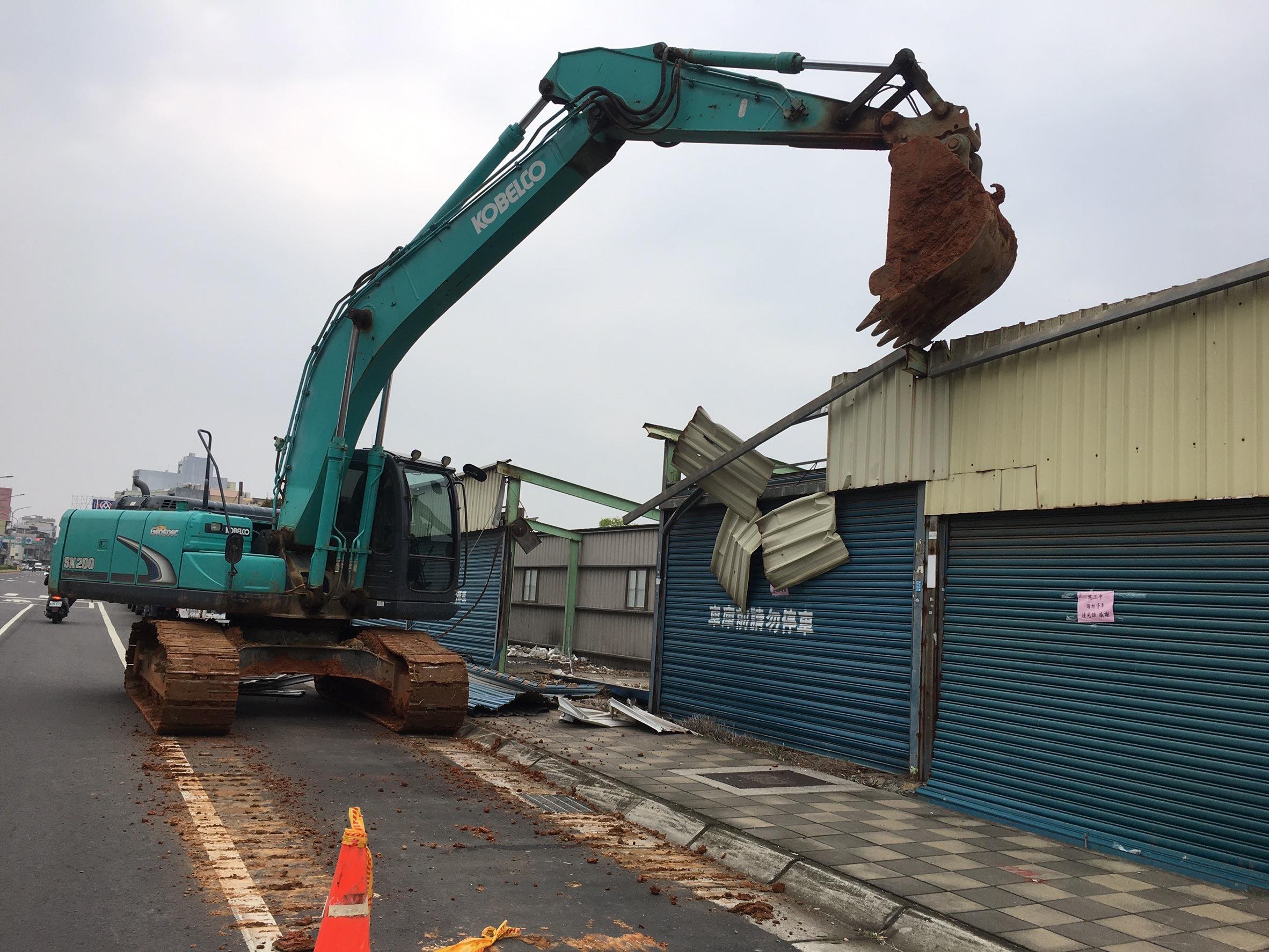 怪手鋪設鐵板工程